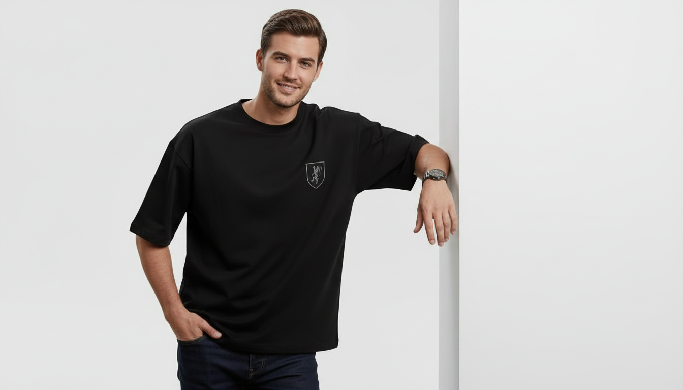 Men’s Premium Black Oversized Crest T-ShirtMen’s Premium Black Oversized Crest T-Shirt