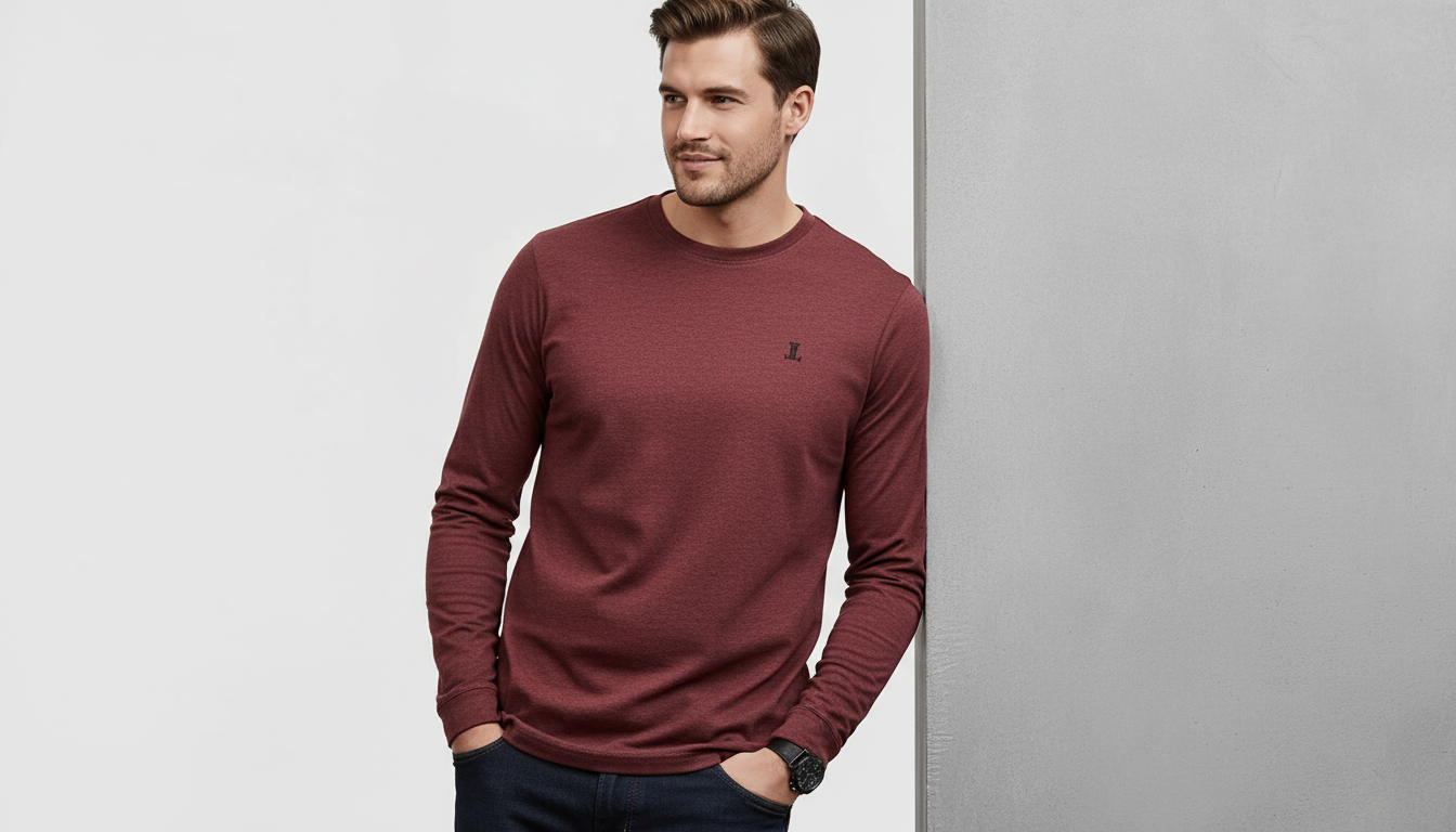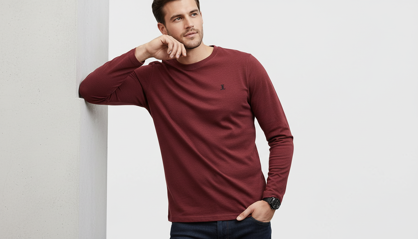 Men’s Premium Brown Slim-Fit Long Sleeve T-Shirt