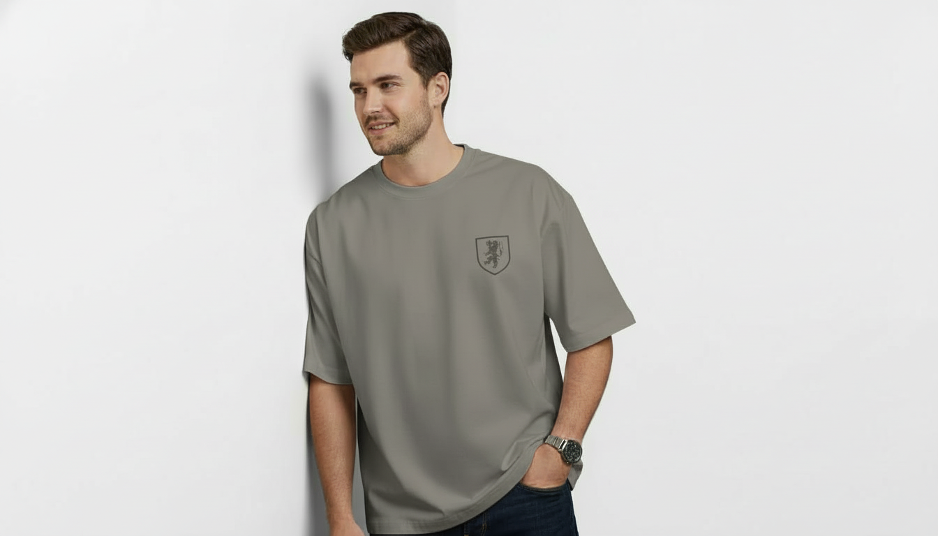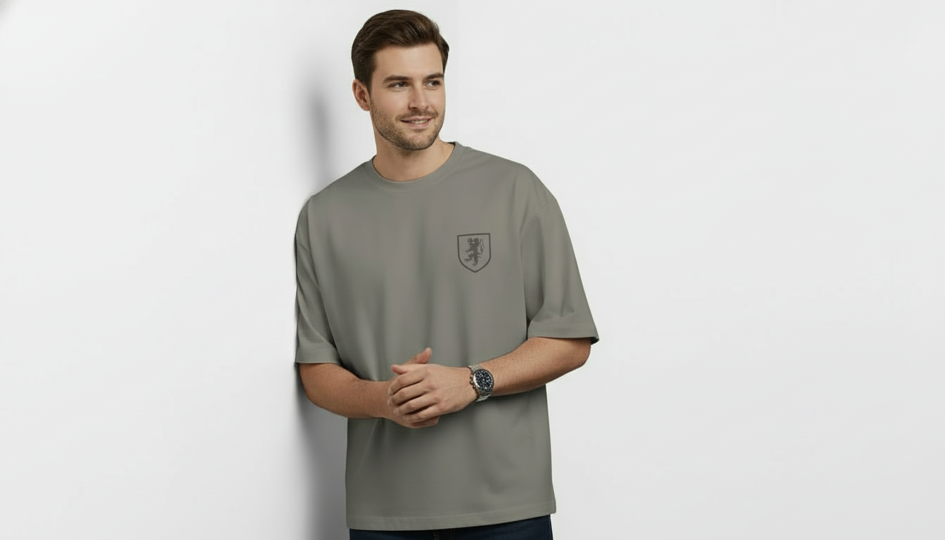 Men’s Premium Grey Oversized Crest T-Shirt